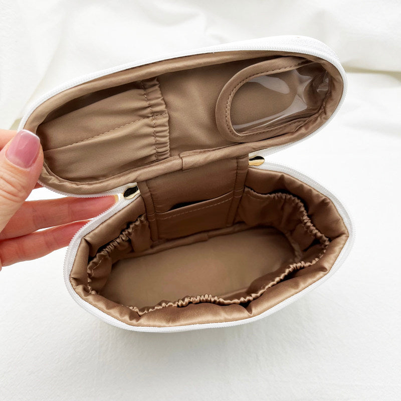 Sturdy & Structured Shape: The barrel (cylindrical) shape provides more internal space than a flat pouch and stands upright on its own, keeping your items organized and easy to see.