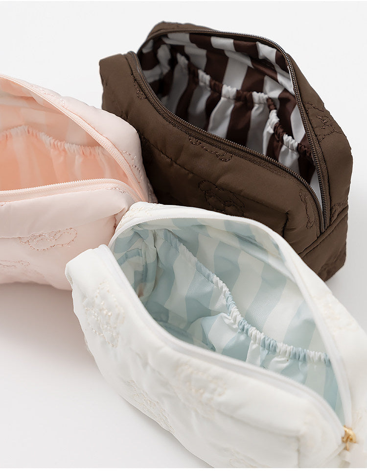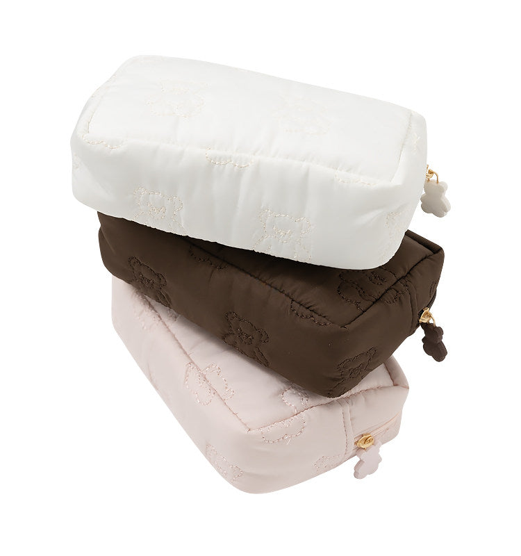 Cute Cartoon Bear Embroidery Lightweight Pouch | Cosmetic & Storage Bag
