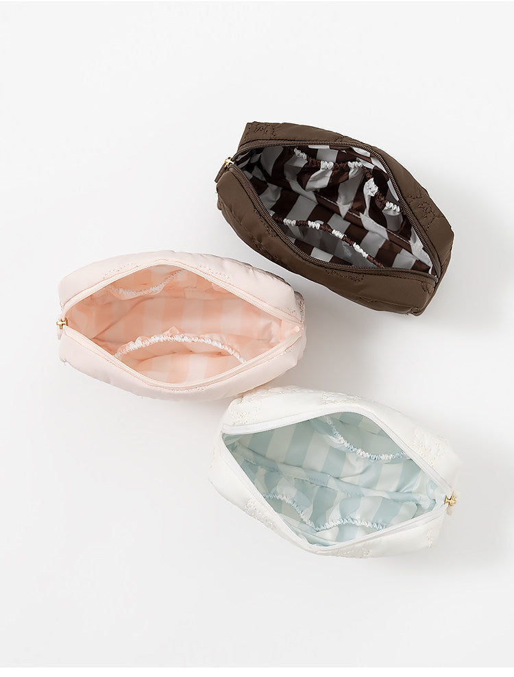 This lightweight pouch features charming cartoon bear embroidery that adds personality to your daily essentials. Crafted with durable, easy-to-clean materials, it's ideal for organizing cosmetics, toiletries, travel items, or small accessories. The compact design fits effortlessly into bags or luggage, while the secure closure keeps contents protected. Perfect for both everyday use and on-the-go convenience, this versatile pouch combines practical functionality with delightful aesthetic appeal.