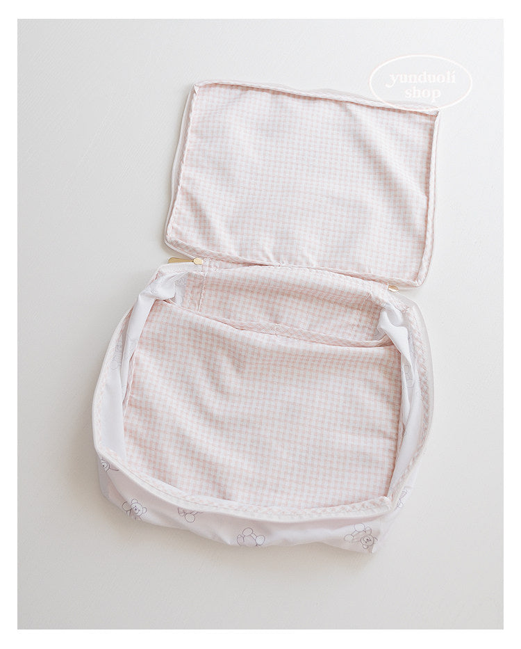 This versatile storage bag combines practical functionality with charming design, featuring a spacious interior perfect for organizing underwear, hosiery, and delicate accessories during travel or everyday use. The durable construction and handheld design make it easy to transport between locations, while the cute cartoon bear aesthetic adds a playful touch to your luggage collection. Ideal for keeping intimates organized and protected, this multi-functional organizer maximizes packing efficiency without sacrificing style or accessibility.