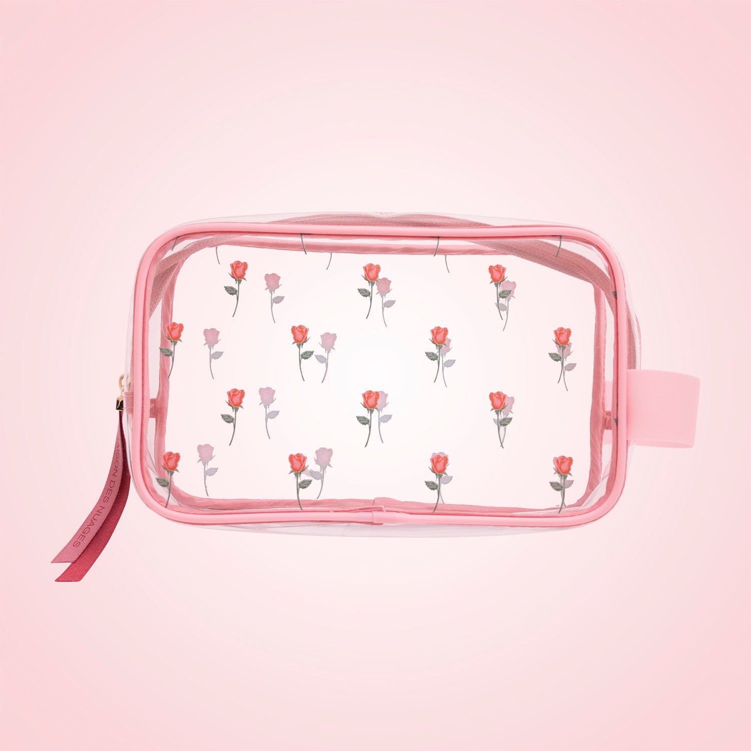 Sweet Lovely Rose Printed Clear Cosmetic Bag - Travel Essential for Makeup Organizing